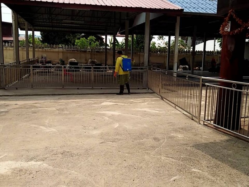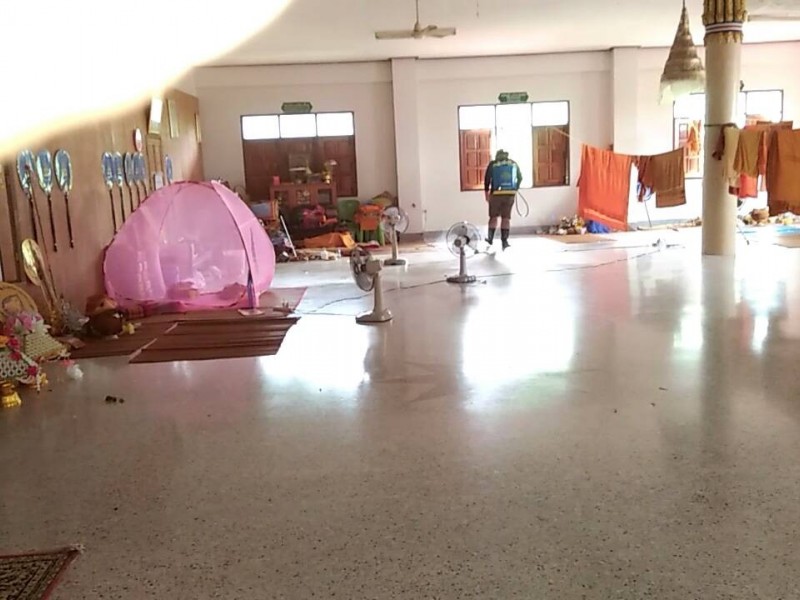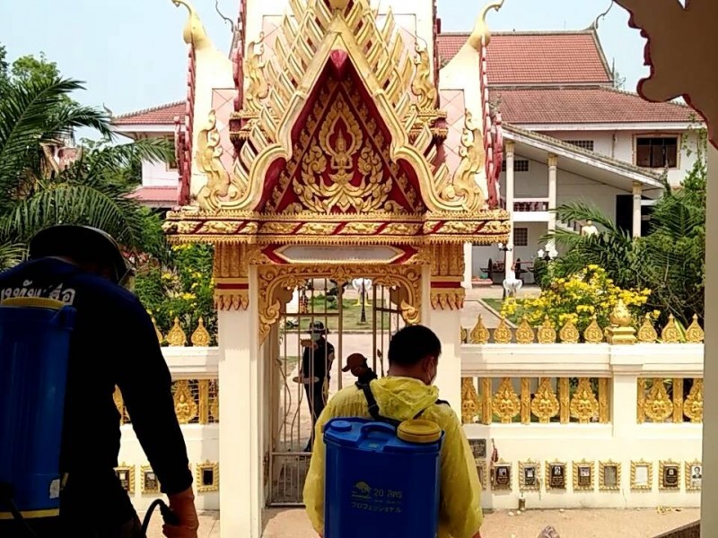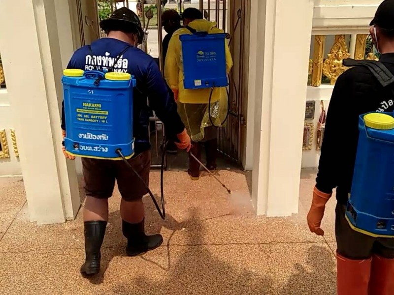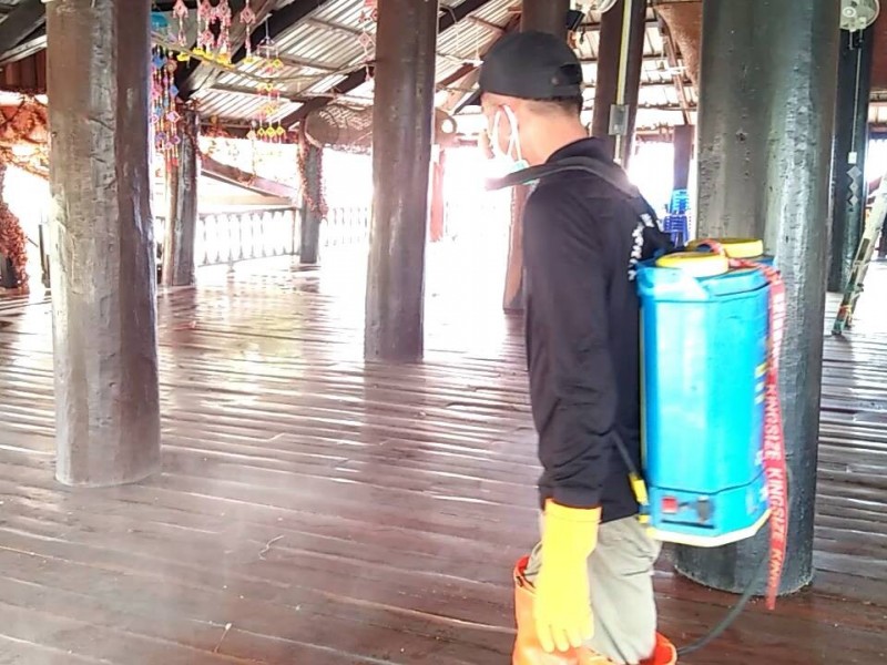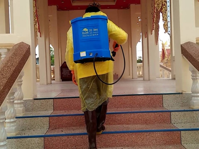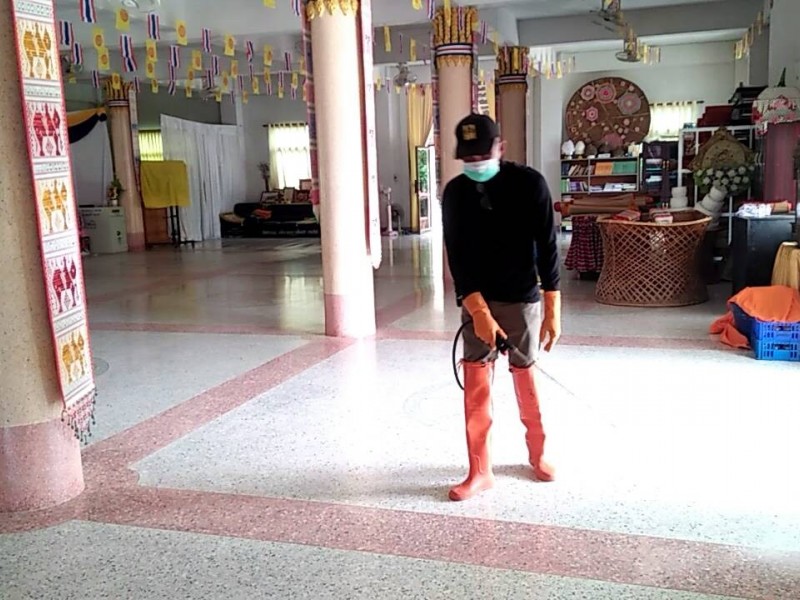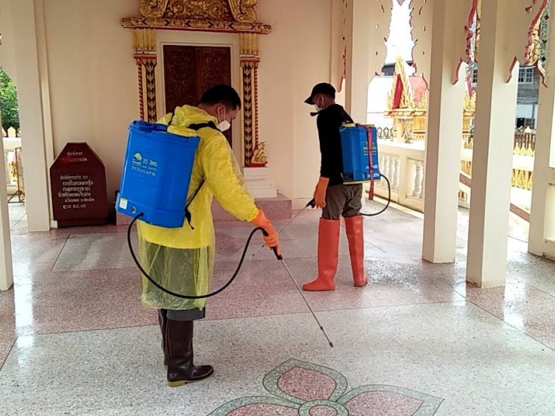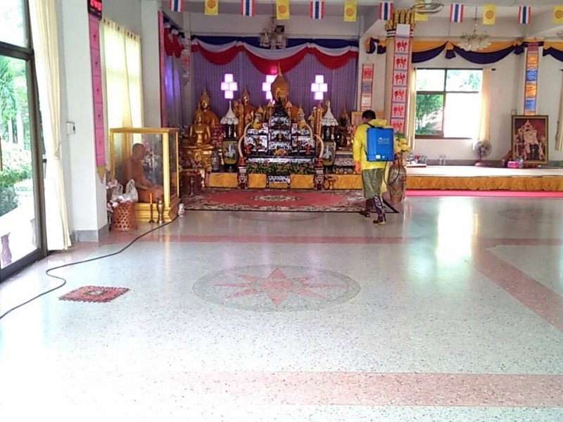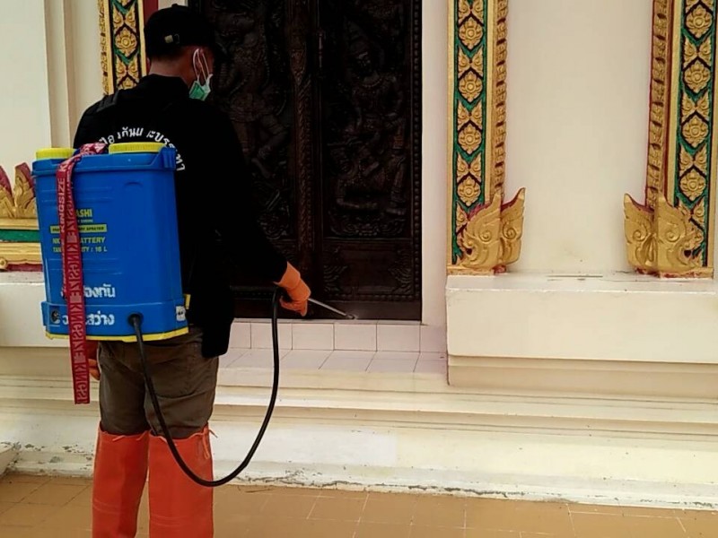 ทำความสะอาดฉีดพ่นยาฆ่าเชื้อ เพื่อป้องกันไวรัสโควิด 19 ให้กับทางวัดศิริมงคลบ้านสว่าง