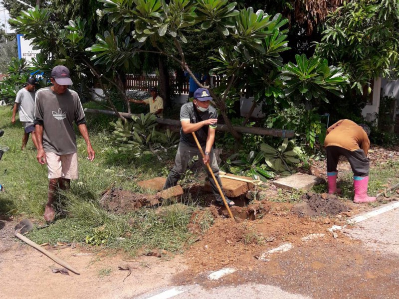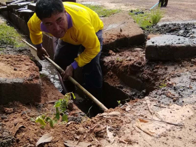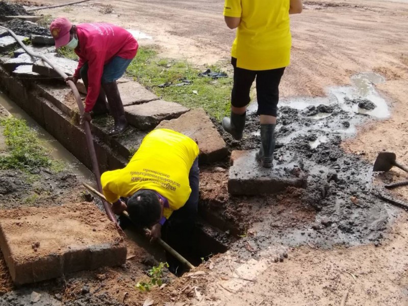 ทำความสะอาดรางระบายน้ำ หมู่ที่ 11 บ้านใหม่สถานี