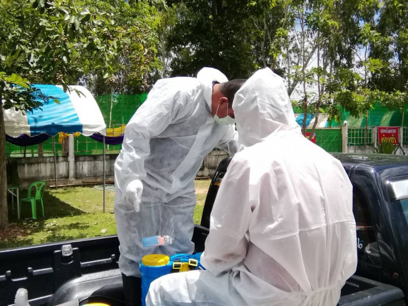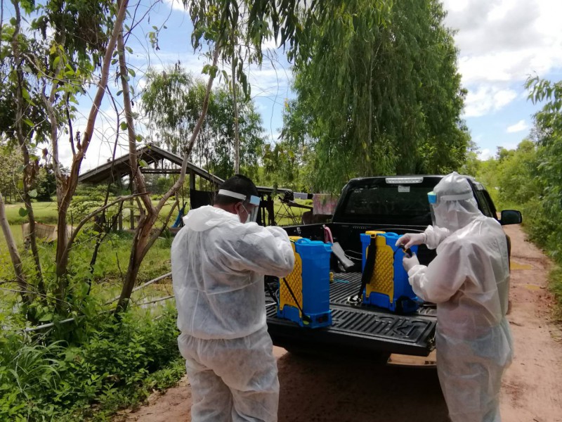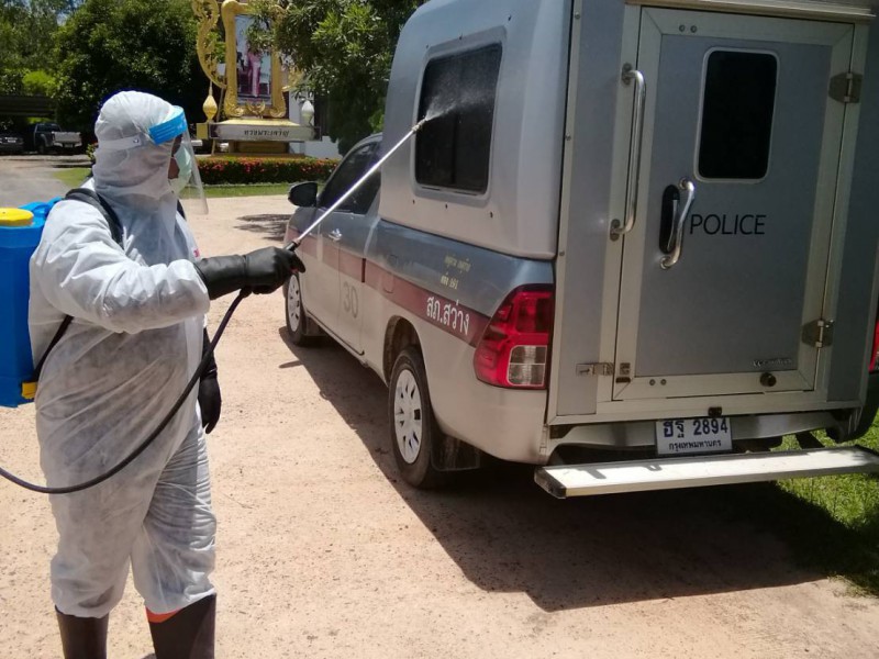 ฉีดพ่นยาฆ่าเชื้อไวรัสโคโรนา 2019 (COVID-19) ในเขตพื้นที่ตำบลสว่าง