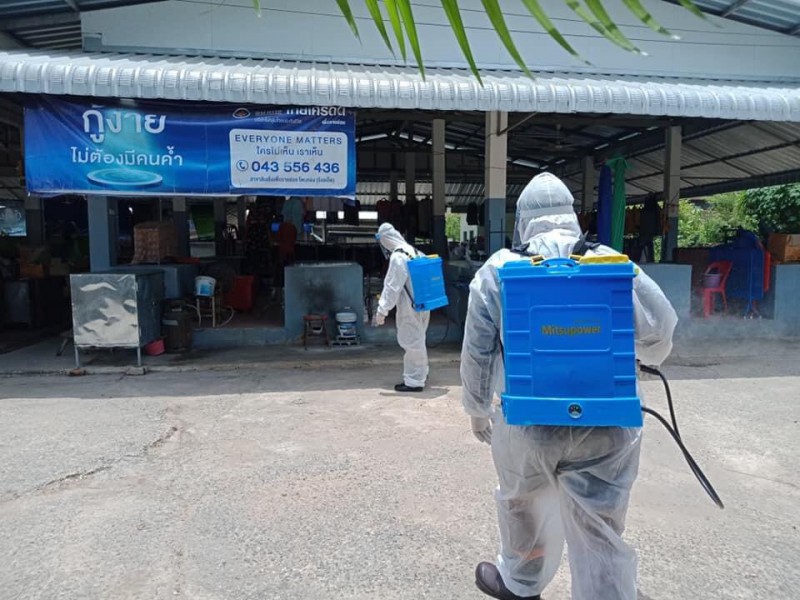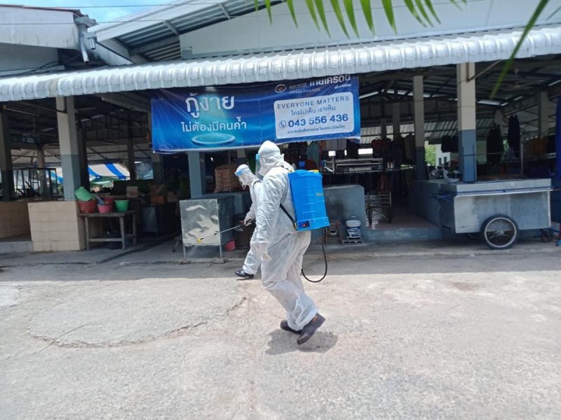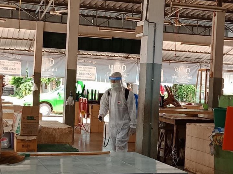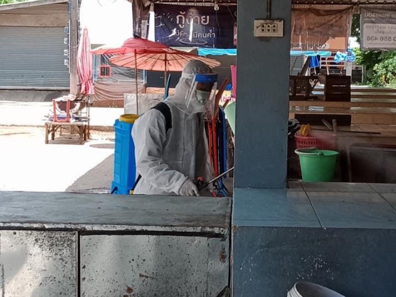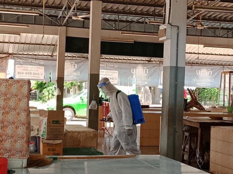 ฉีดพ่นยาฆ่าเชื้อไวรัสโคโรนา 2019 (COVID-19) บริเวณตลาดสดตำบลสว่าง