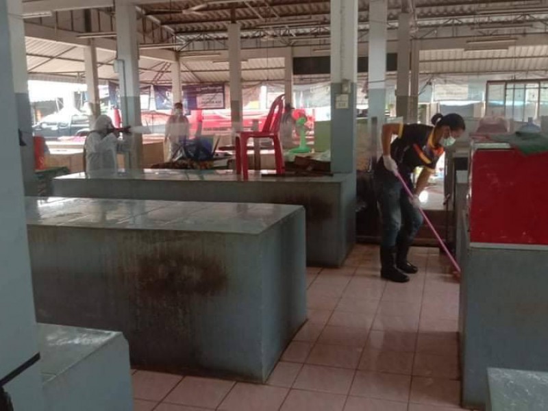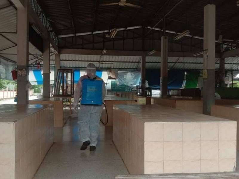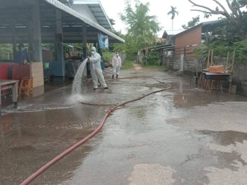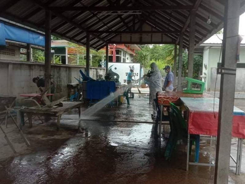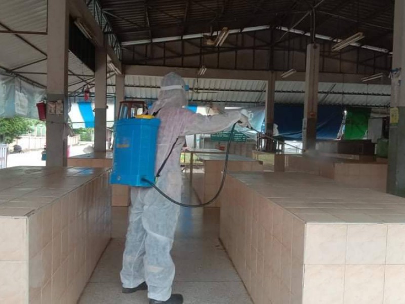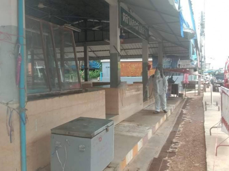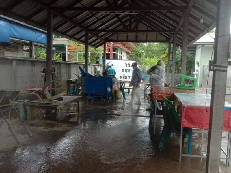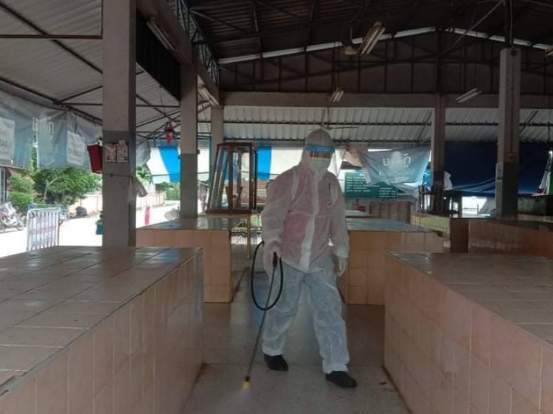ฉีดพ่นยาฆ่าเชื้อไวรัสโคโรนา 2019 (COVID-19) บริเวณตลาดสดตำบลสว่าง