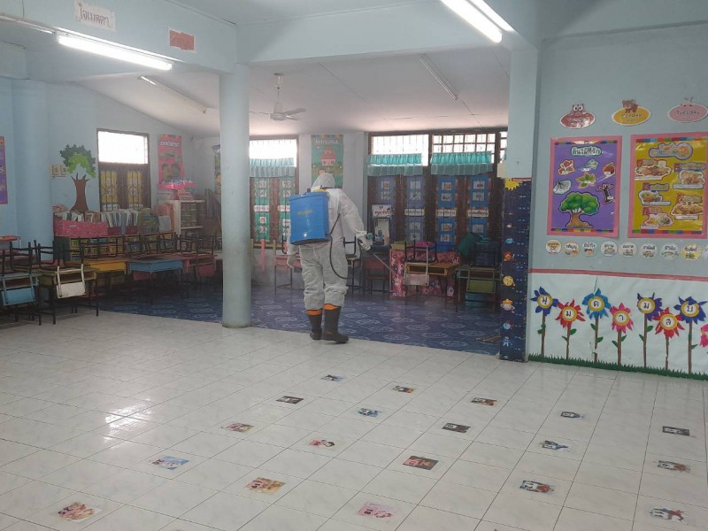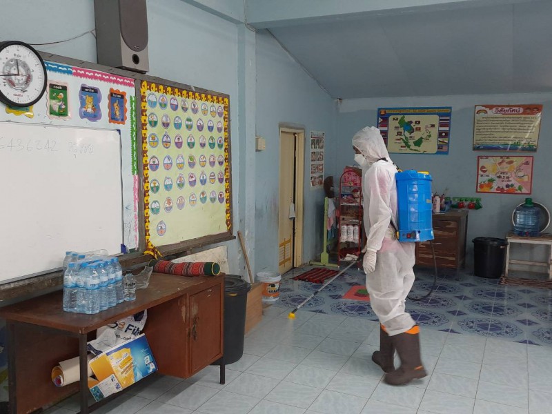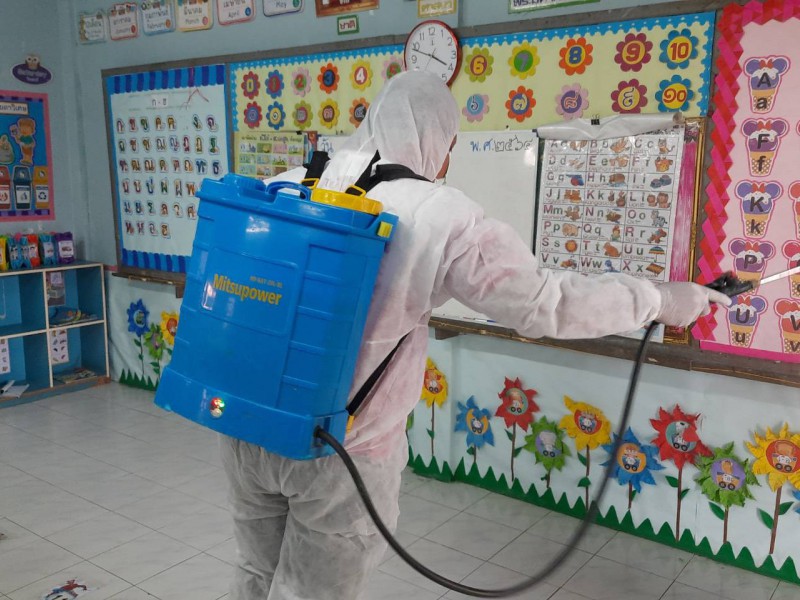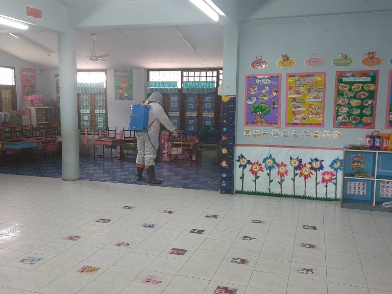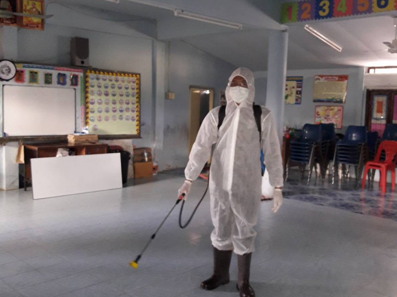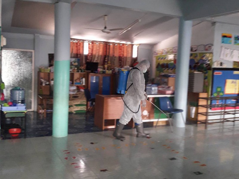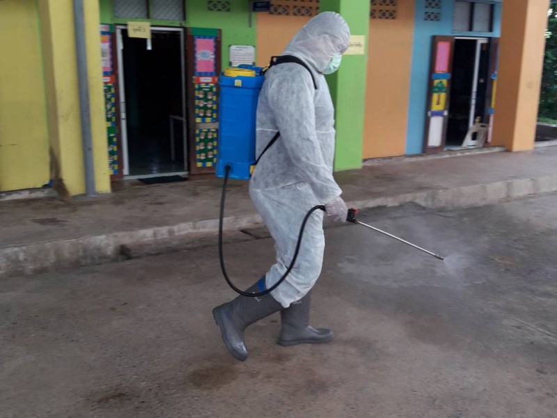 ฉีดพ่นยาฆ่าเชื้อไวรัสโคโรนา 2019 (COVID-19) บริเวณโรงเรียนชุมชนบ้านสว่าง