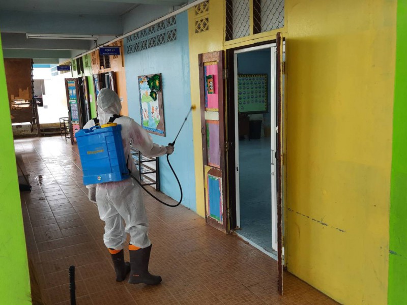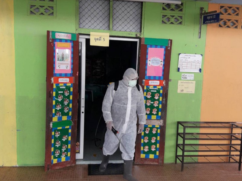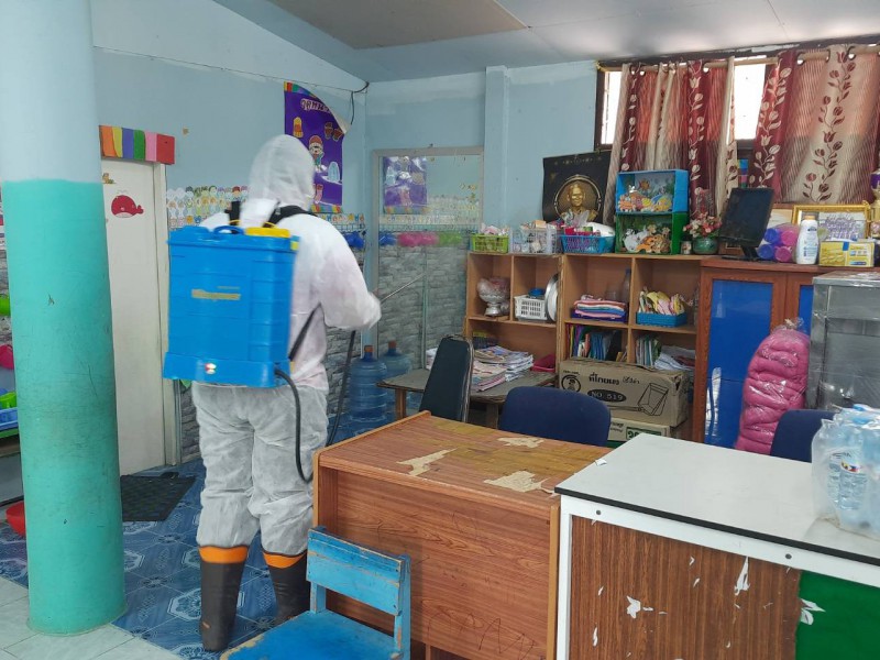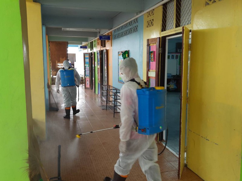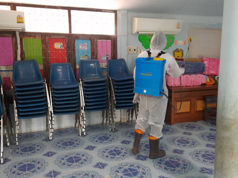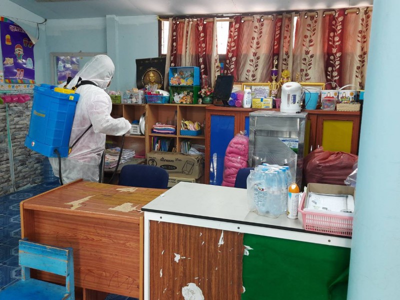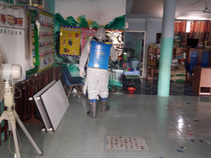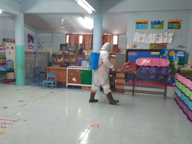 ฉีดพ่นยาฆ่าเชื้อไวรัสโคโรนา 2019 (COVID-19) บริเวณโรงเรียนชุมชนบ้านสว่าง