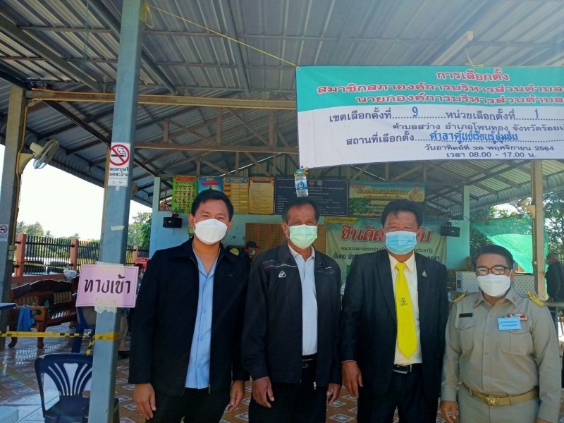 29 พฤศจิกายน 2564 14:22 น.คณะกรรมการการเลือกตั้งประจำองค์การบริหารส่วนตำบลสว่าง ถ่ายภาพร่วมกับ คณะกรรมการประจำหน่วยเลือกตั้ง ในการออกตรวจหน่วยเลือกตั้ง