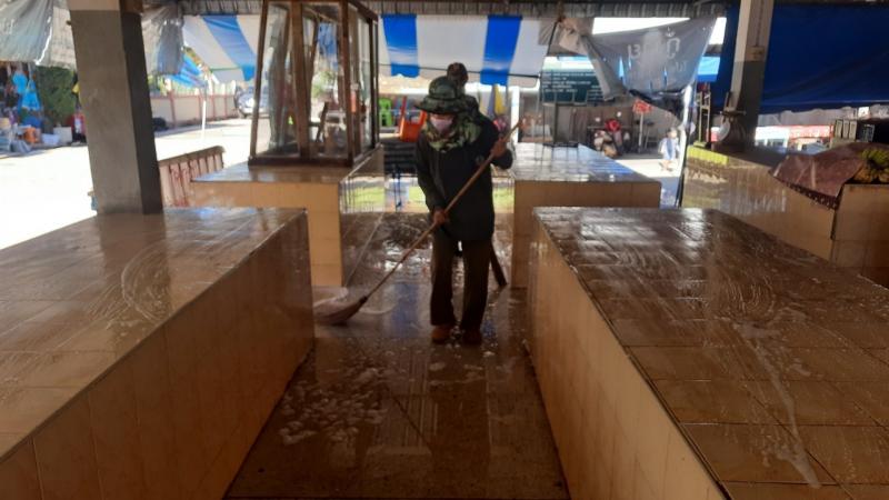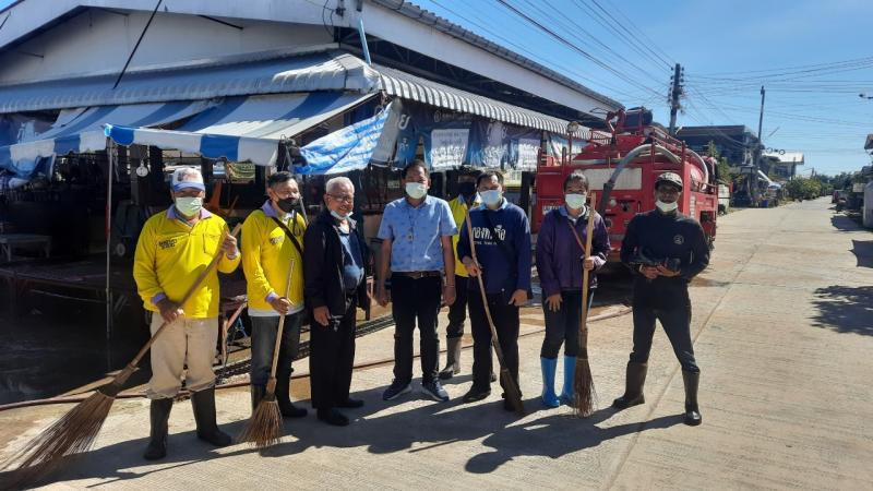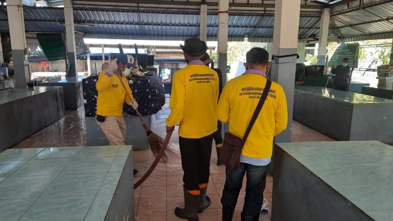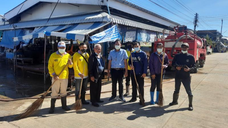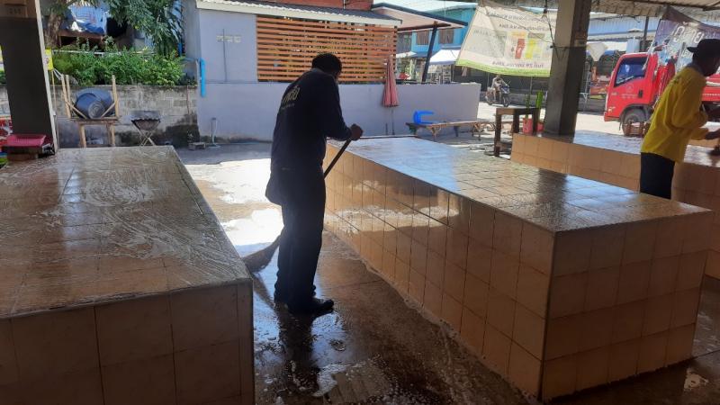 ทำความสะอาดฆ่าเชื้อบริเวณตลาดสดบ้านสว่าง เพื่อป้องกันโรคโควิด-19
