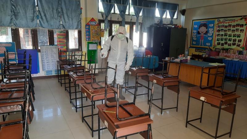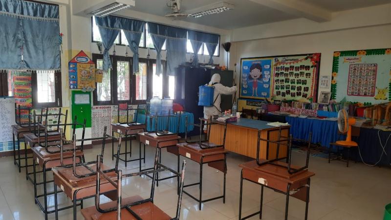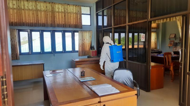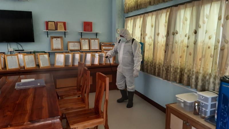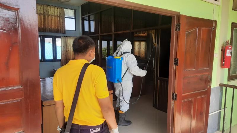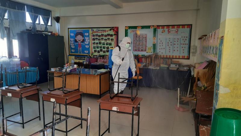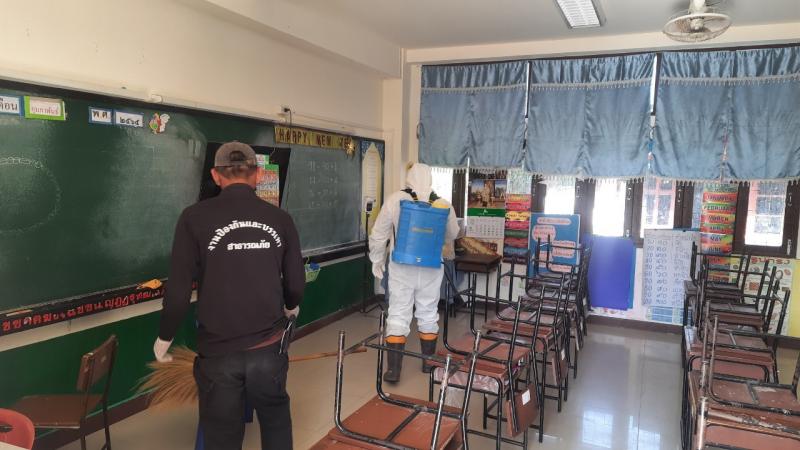 ฉีดพ่นยาฆ่าเชื้อไวรัสโคโรนา 2019 (COVID-19) บริเวณโรงเรียนชุมชนบ้านสว่าง