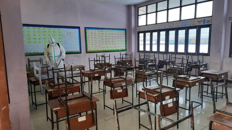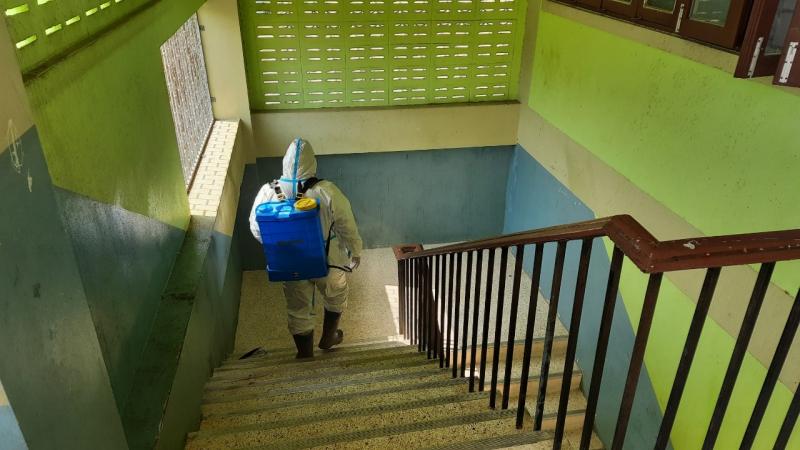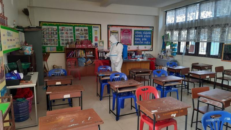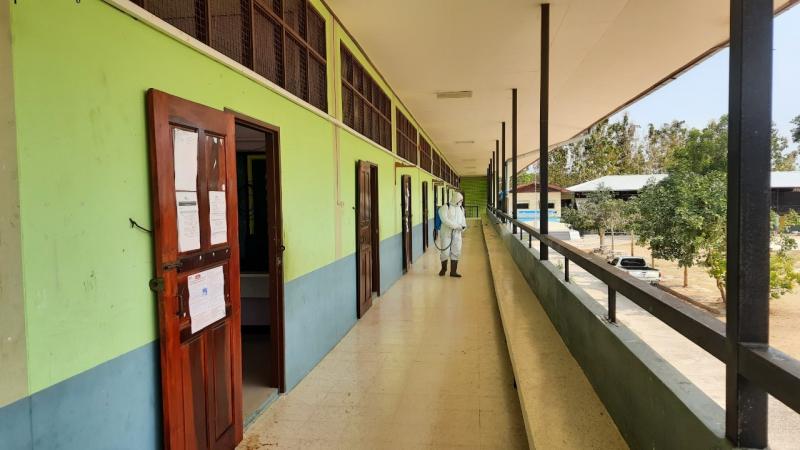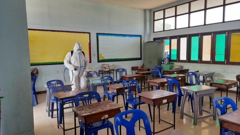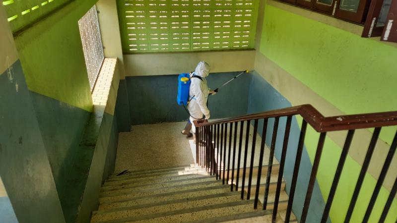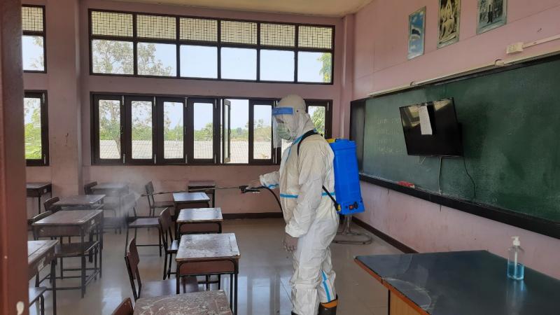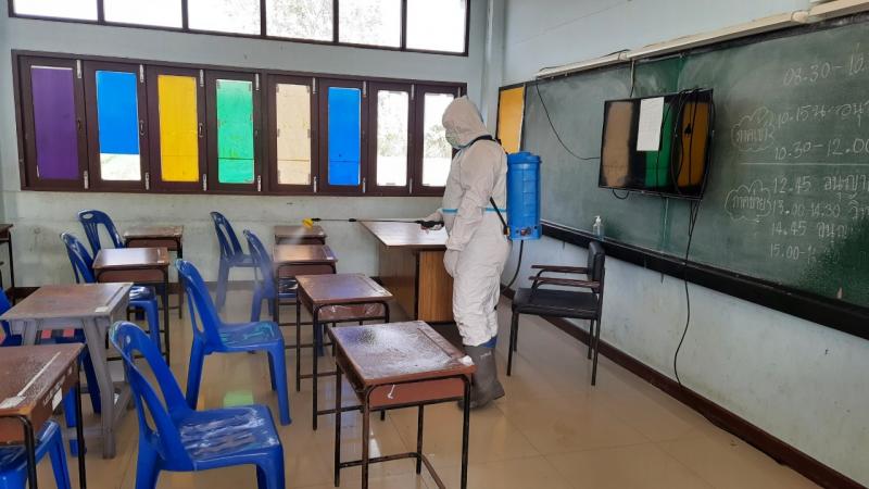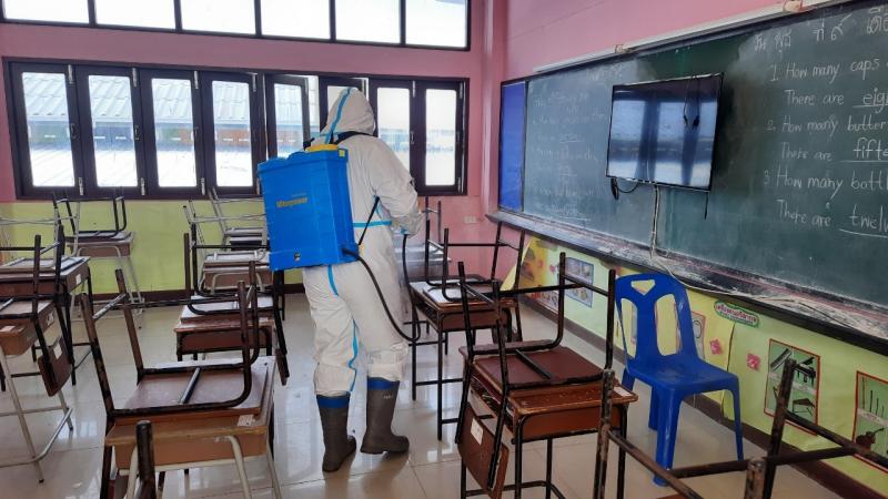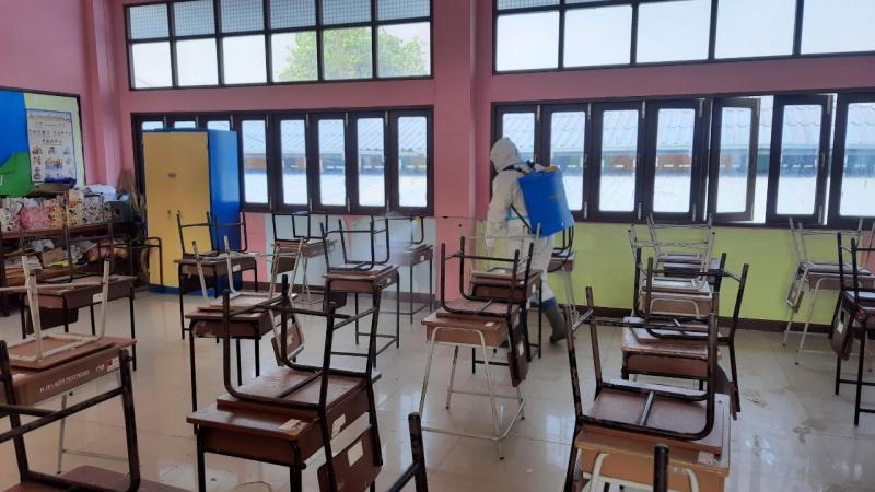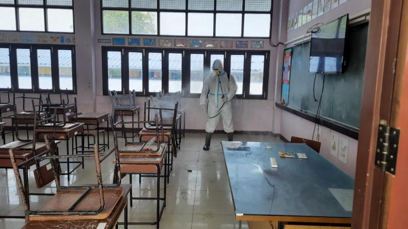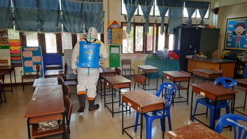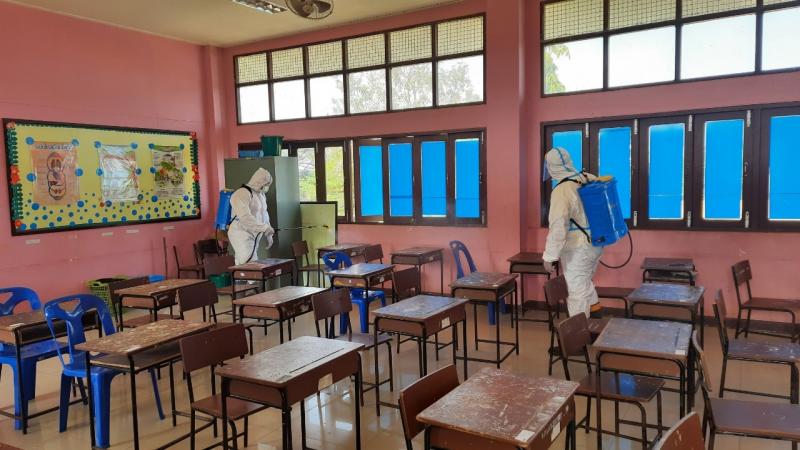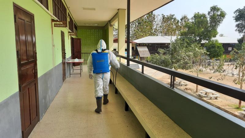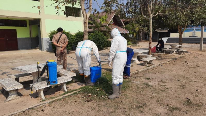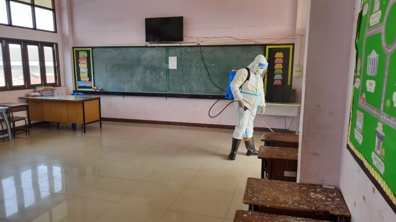 ฉีดพ่นยาฆ่าเชื้อไวรัสโคโรนา 2019 (COVID-19) บริเวณโรงเรียนชุมชนบ้านสว่าง