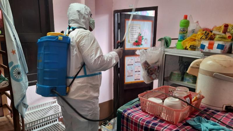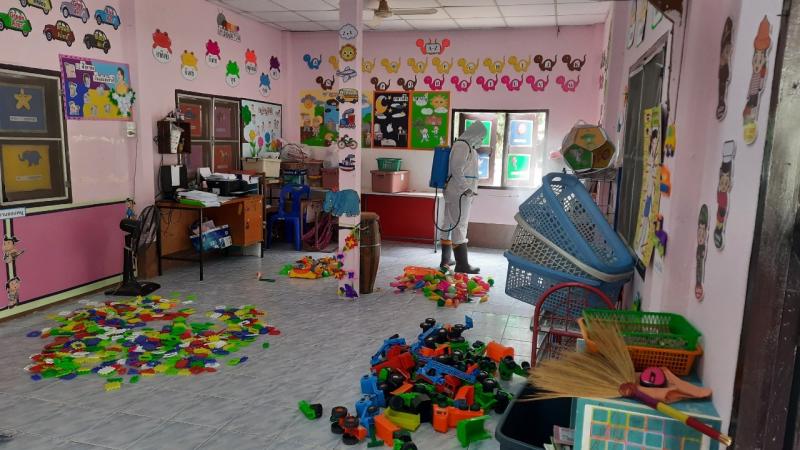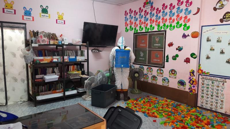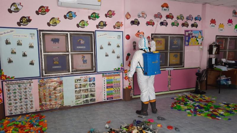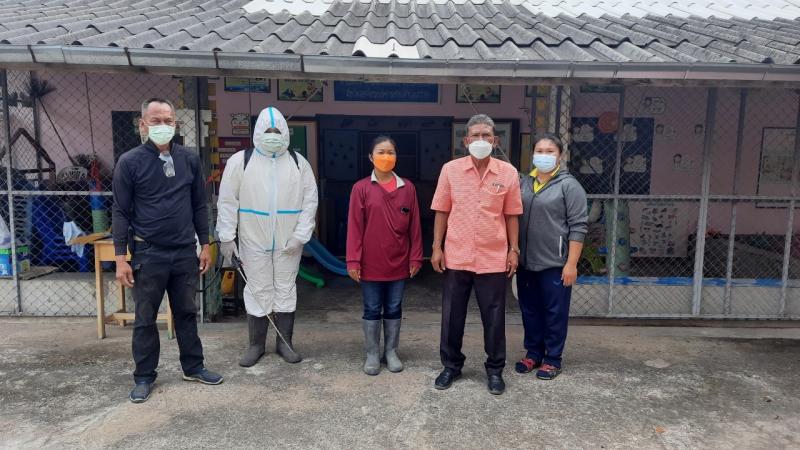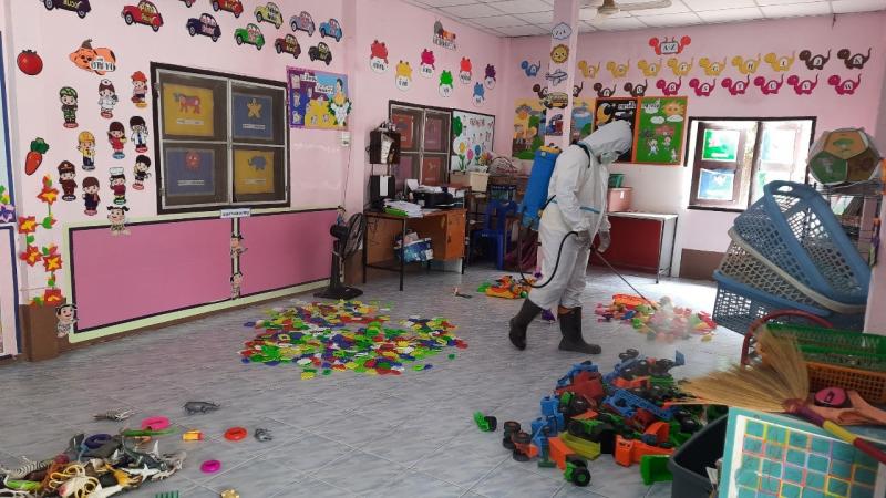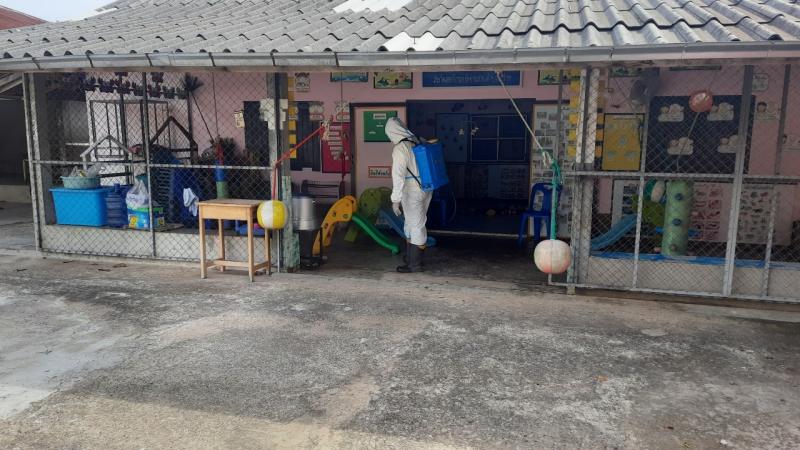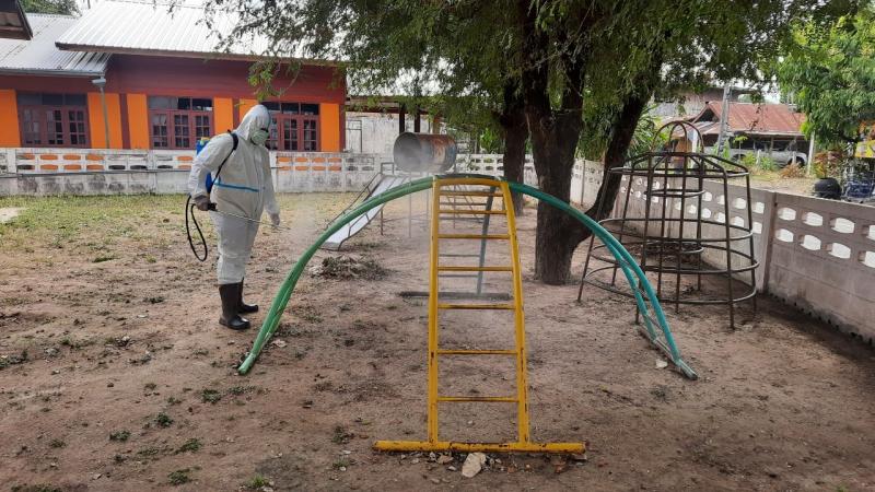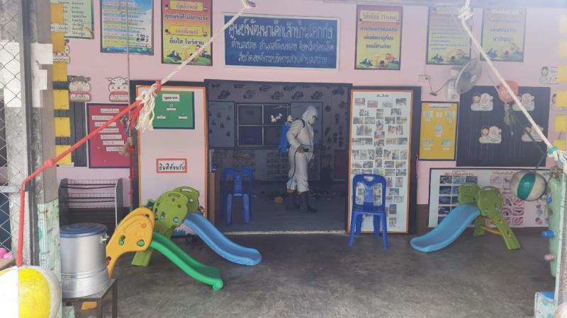 ฉีดพ่นยาฆ่าเชื้อไวรัสโคโรนา 2019 (COVID-19) บริเวณศูนย์พัฒนาเด็กเล็กบ้านโคกก่ง
