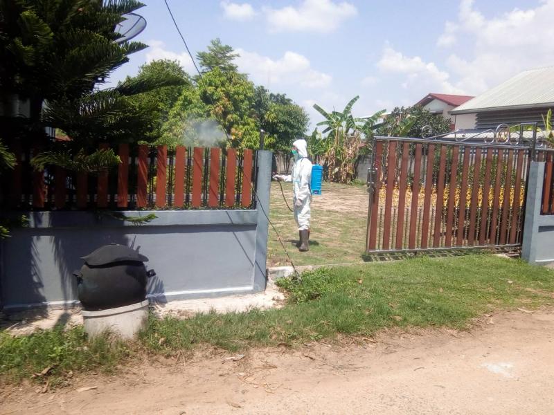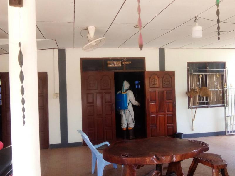 นายอวยชัย พระสว่าง นายก อบต.สว่าง มอบหมายให้งานป้องกันและบรรเทาสาธารณภัยออกฉีดพ่นยาฆ่าเชื้อไวรัสโคโรนา 2019 (COVID-19) บริเวณหมู่ที่ 13