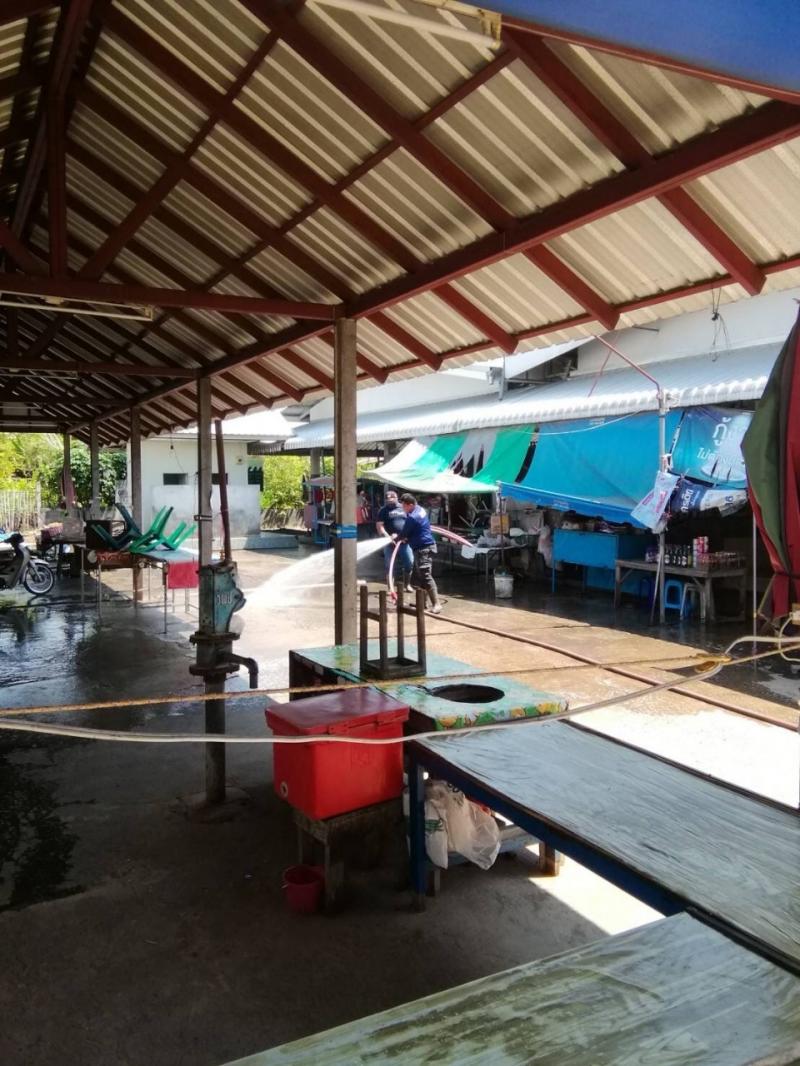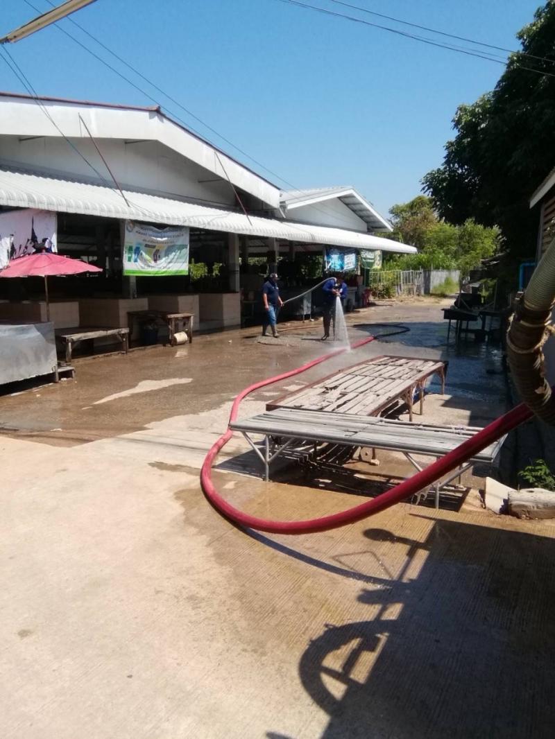 นายอวยชัย พระสว่าง นายก อบต.สว่าง มอบหมายให้งานป้องกันและบรรเทาสาธารณภัยออกทำความสะอาดบริเวณตลาดสดบ้านสว่าง ในวันที่ 9 มีนาคม 2565