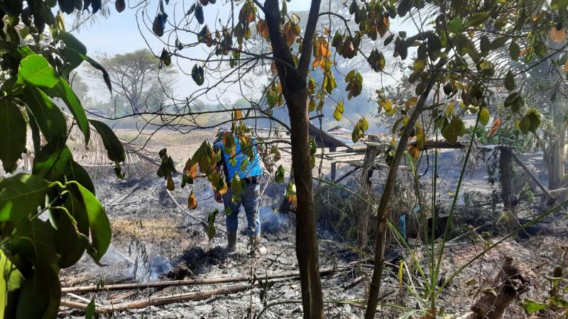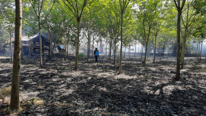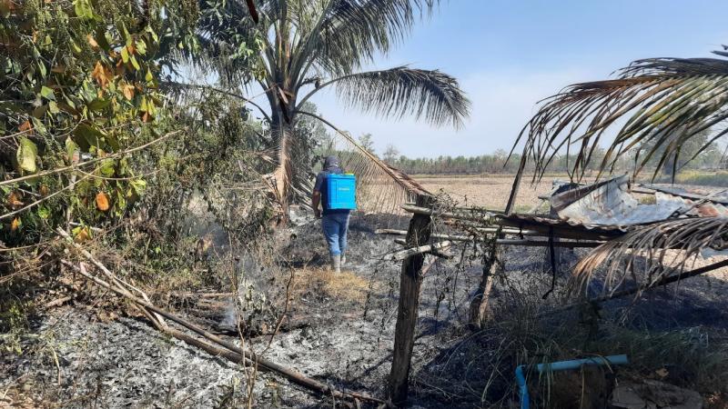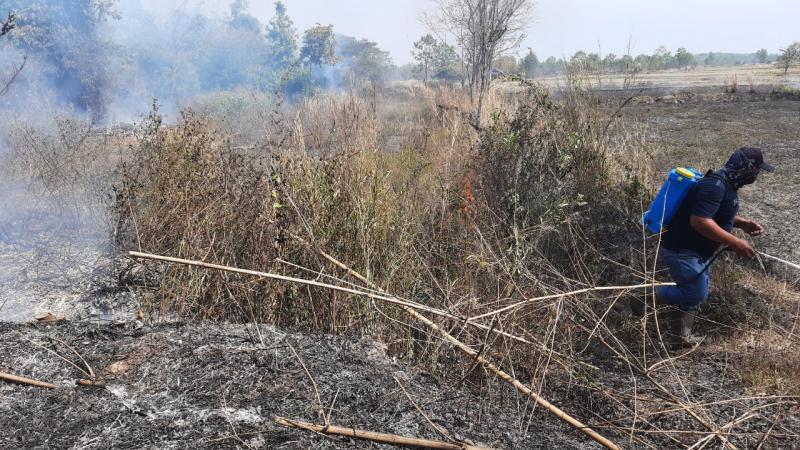 นายอวยชัย พระสว่าง นายก อบต.สว่าง มอบหมายให้งานป้องกันและบรรเทาสาธารณภัยองค์การบริหารส่วนตำบลสว่างออกระงับเหตุเพลิงไหม้ บริเวณกุดใหญ่ หมู่ที่ 3 บ้านบึงก้านตง
