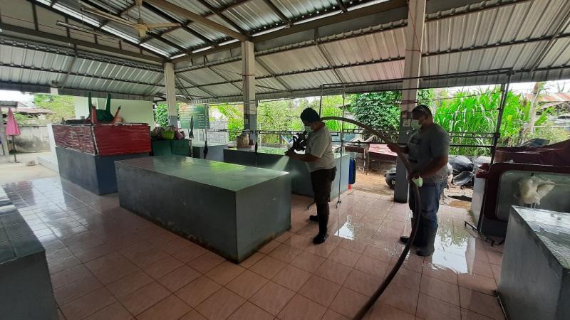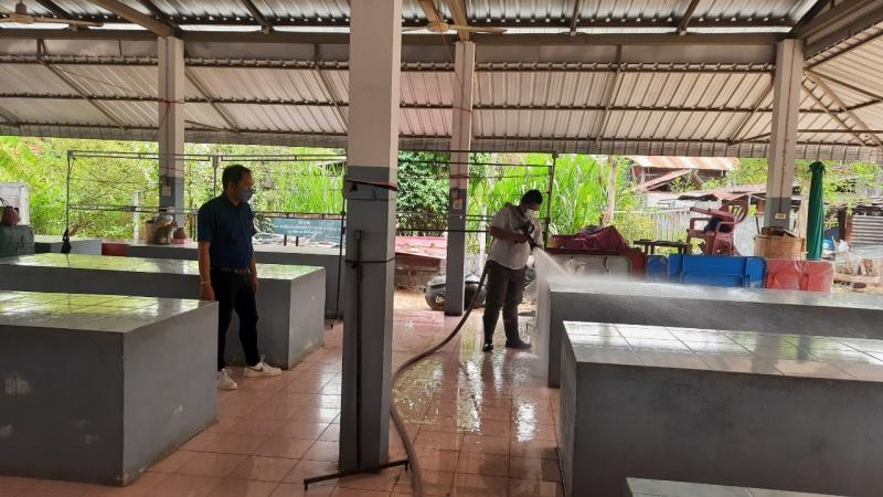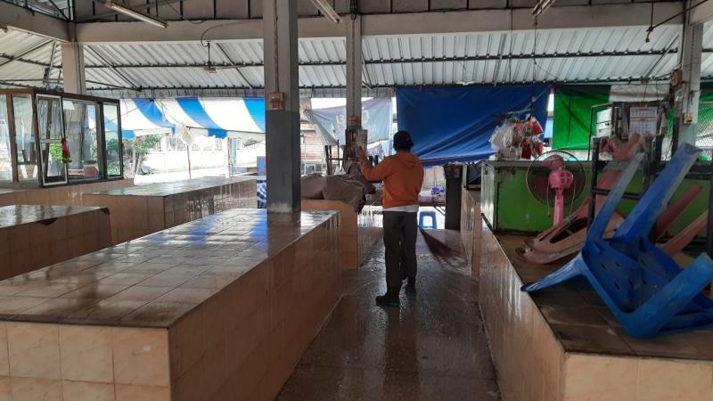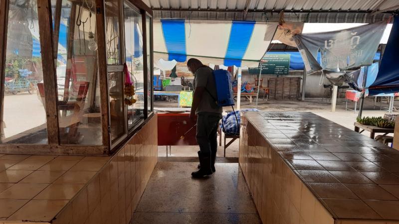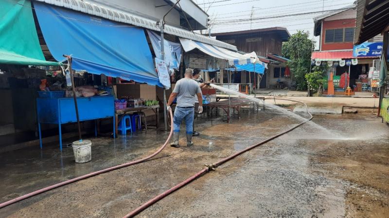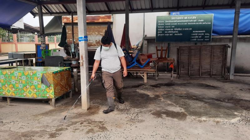 นายอวยชัย พระสว่าง นายก อบต.สว่าง มอบหมายให้งานป้องกันและบรรเทาสาธารณภัยออกฉีดพ่นยาฆ่าเชื้อไวรัสโคโรนา 2019 (COVID-19) บริเวณตลาดสดตำบลสว่าง