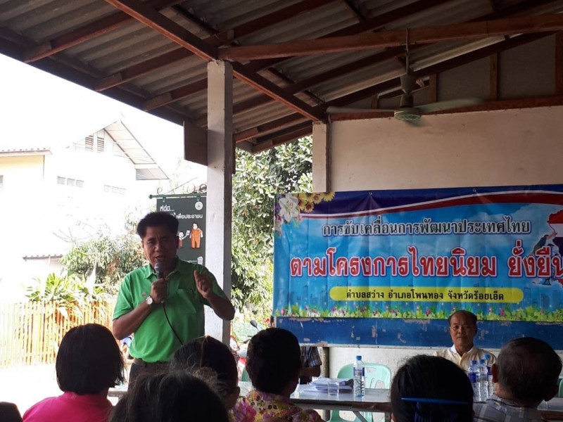 องค์การบริหารส่วนตำบลสว่าง KICK OFF โครงการไทยนิยม ยั่งยืน วันที่ 21 กุมภาพันธ์ 2561 ณ สำนักงานคณะกรรมการหมู่บ้าน บ้านท่าสำราญ หมู่ที่ 2 ตำบลสว่าง อำเภอโพนทอง จังหวัดร้อยเอ็ด