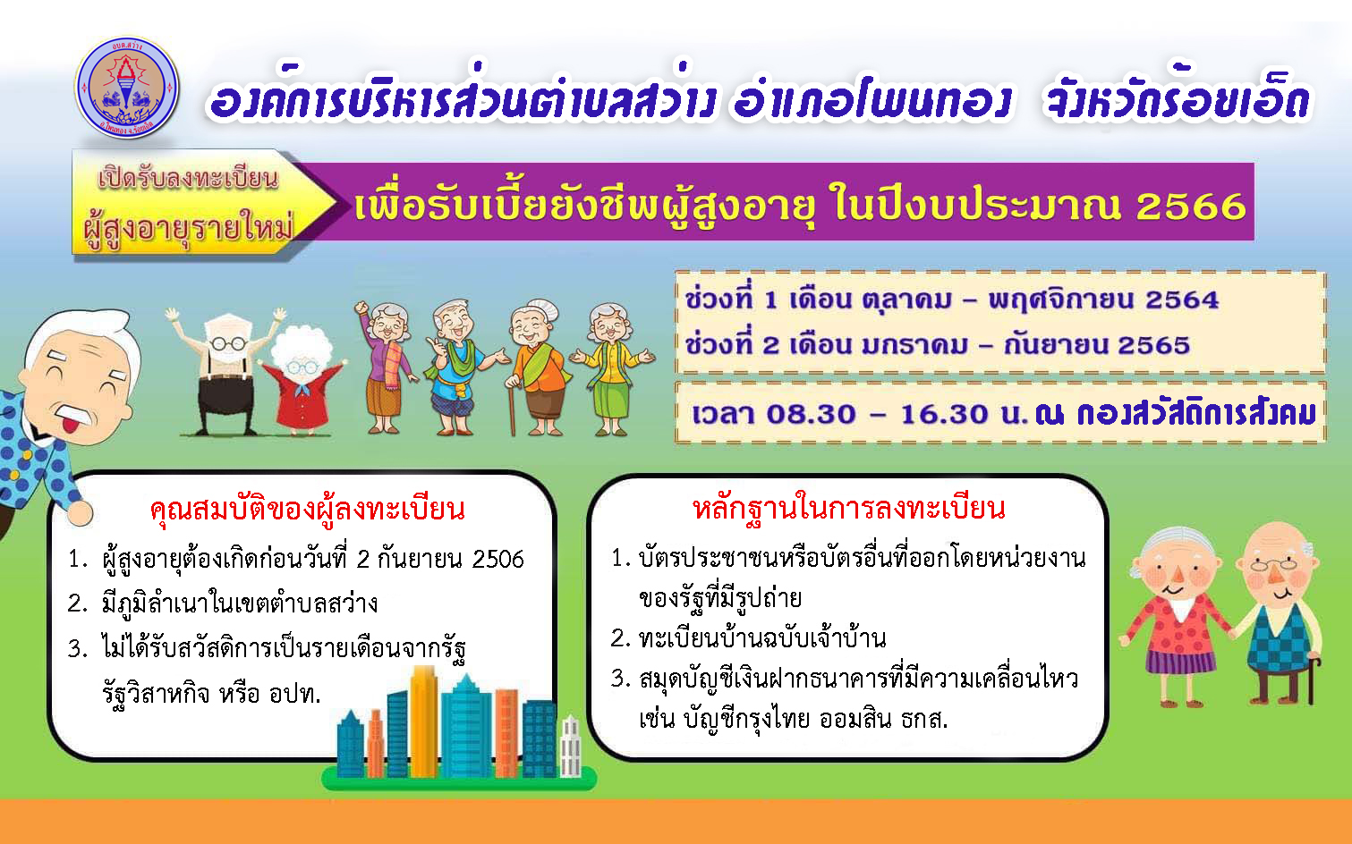เปิดรับลงทะเบียนผู้สูงอายุรายใหม่ เพื่อรับเบี้ยยังชีพผู้สูงอายุ ปีงบประมาณ 2566