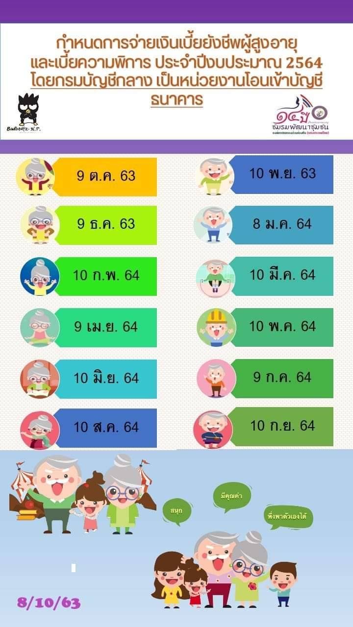 กำหนดการจ่ายเงินเบี้ยยังชีพผู้สูงอายุและเบี้ยความพิการ ประจำปีงบประมาณ 2564