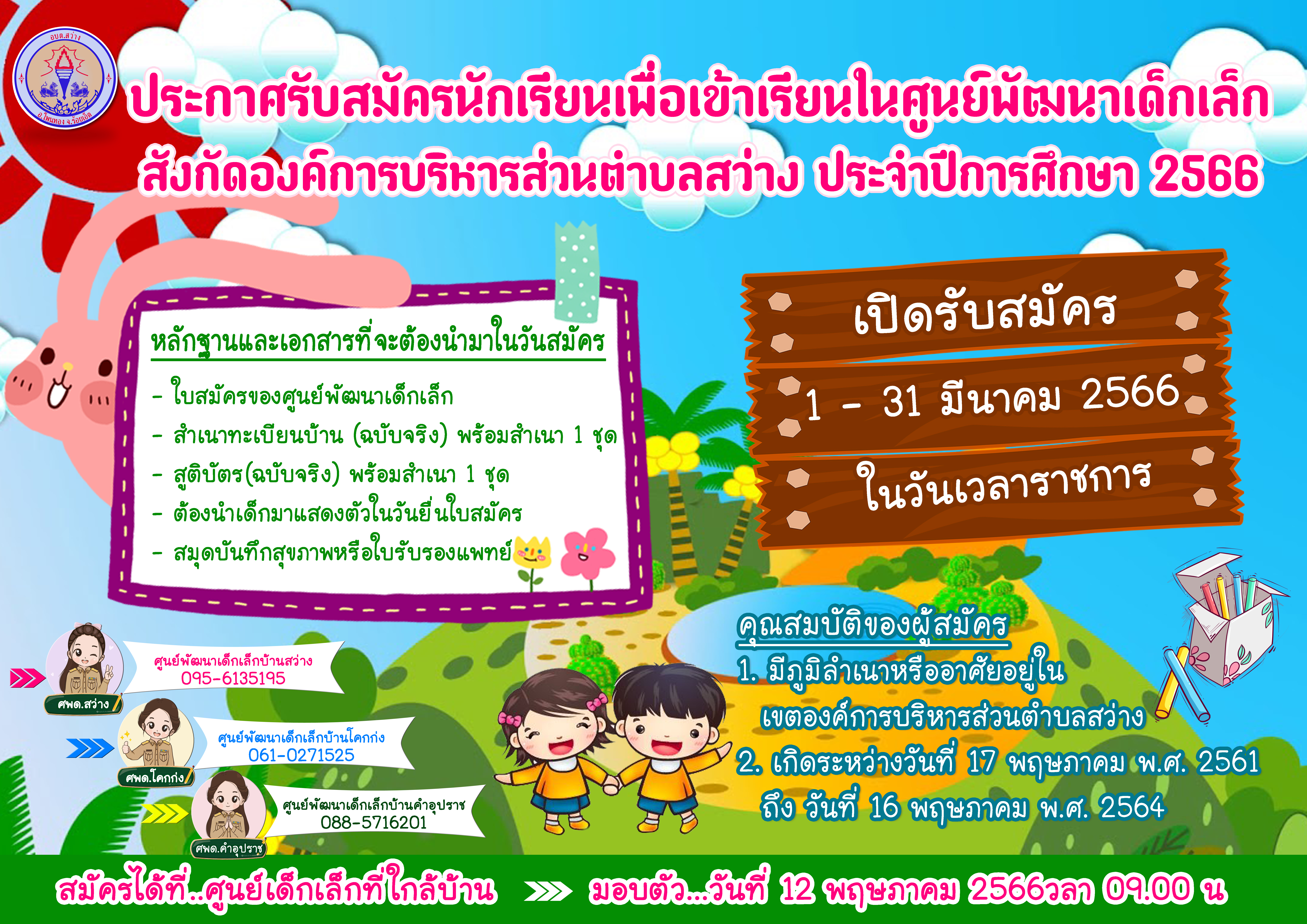 ประกาศรับสมัครนักเรียนเพื่อเข้าเรียนในศูนย์พัฒนาเด็กเล็ก ประจำปีการศึกษา 2566