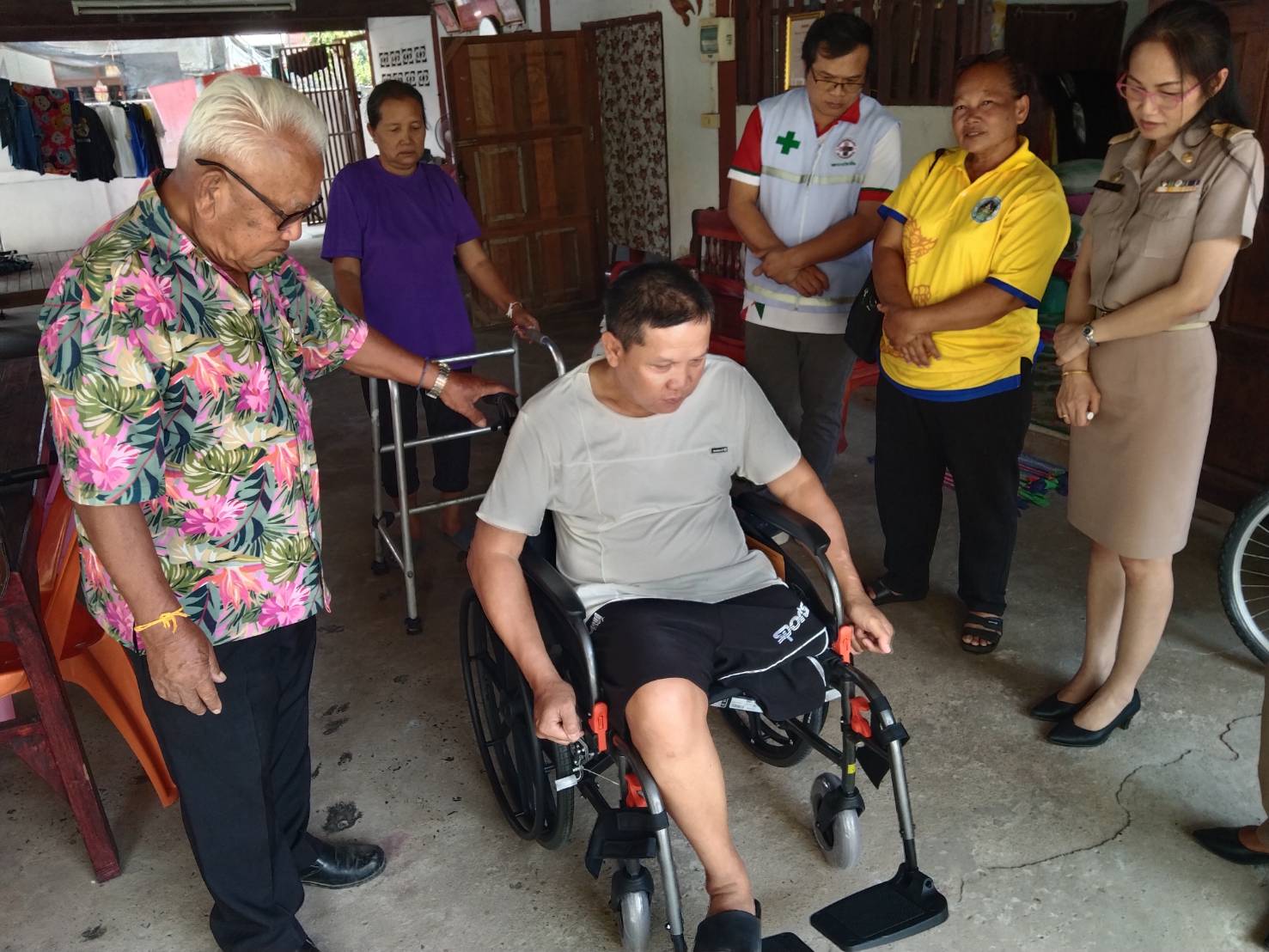 องค์การบริหารส่วนตำบลสว่าง ร่วมกับ รพ.สต.บ้านหนองกุง ต.สว่าง มอบรถเข็นผู้พิการ(wheelchair)ให้กับนายอำนวย รัตนวงค์ ม.4 ต.สว่าง ตามโครงการจัดหากายอุปกรณ์สำหรับช่วยเหลือคนพิการ เฉลิมพระเกียรติพระบาทสมเด็จพระเจ้าอยู่หัว เนื่องในโอกาสพระราชพิธีมหามงคลเฉลิมพ